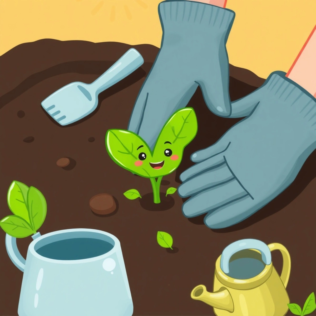 А еще нам пригодятся: лейка с узким носиком (чтобы поливать аккуратно, как дождик), пульверизатор (для опрыскивания), и прозрачная пленка или стеклышко. Последнее нужно, чтобы создать для семян свой маленький «парник», где им будет тепло и уютно. Вот и все! Видите, как просто? Никаких сложных штуковин!
