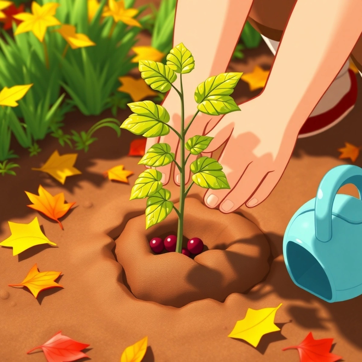 Многие думают, что сажать растения нужно только весной, когда всё просыпается. Но смородина – особенная! Она очень любит осеннюю посадку. Представьте, что вы ложитесь спать, а за ночь чуть-чуть подрастаете. Так и смородина! Осенью, когда уже не жарко, саженец сосредотачивает все силы не на листочках, а на корешках. Он тихонечко, без спешки, приживается в земле до морозов. А весной, как только пригреет солнышко, он уже проснётся на новом месте полным сил и сразу начнёт расти. Это как сделать домашнее задание вечером, чтобы утром спокойно поиграть!